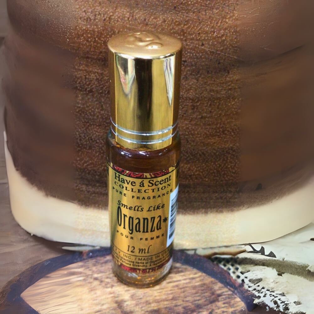 Organza-inspired fragrance oil, natural carrier oils (almond, jojoba, or coconut oil).